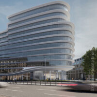 High-rise buildings were built in the station district, particularly in the 1970s and 1980s. These include the Silver Tower on Jürgen-Ponto-Platz, the Gallileo on the corner of Kaiserstrasse and Gallusanlage, both of which originally belonged to the Dresdner Bank headquarters, as well as the Skyper on Taunusstrasse and the Trade Union Building on Wilhelm-Leuschner-Strasse.