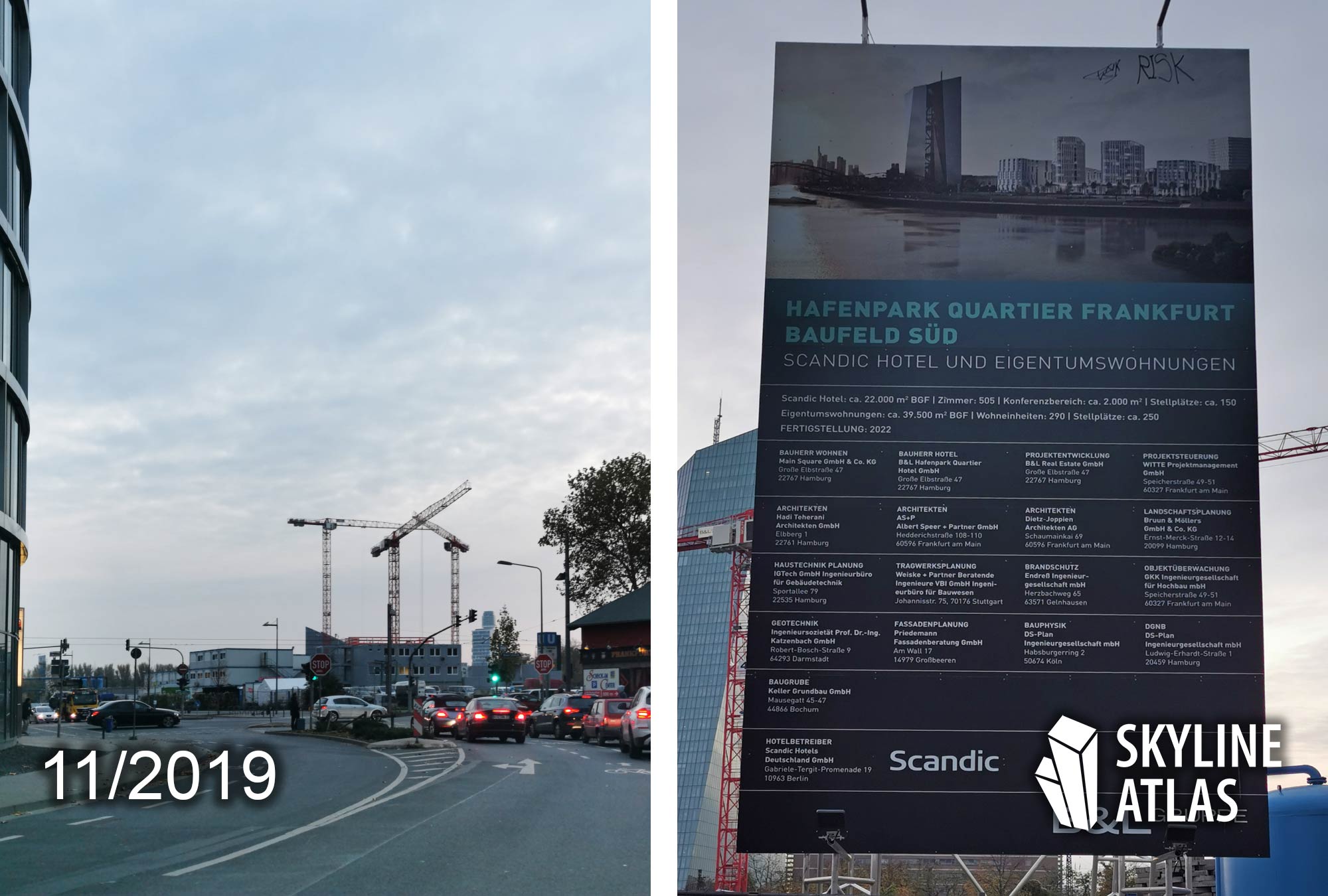 Status December 2017: Scandic Frankfurt Hafenpark was announced as the first tall concrete project. It will have a total of 505 rooms and more than 2000 square meters of conference and event space on 11 floors. The hotel will also feature a restaurant, bar, fitness facilities and one of the largest ballrooms in Frankfurt at 600 square meters. The opening of the project is due in 2021. Here is the visualisation of the Scandic Hotel: