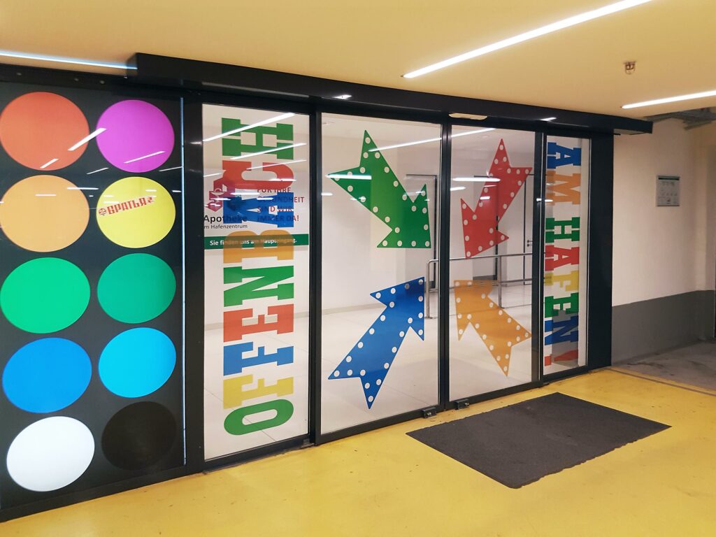 In the Offenbach Harbor District there is a large number of shops and gastronomic offers. These include restaurants, an ice cream parlor and supermarkets from REWE, dm, and Alnatura. The area is popular for families with children because there is a harbor school, a kindergarten, and an adventure playground. The popular Main Cycle Path also runs through the port area and connects Offenbach in the direction of Frankfurt.
