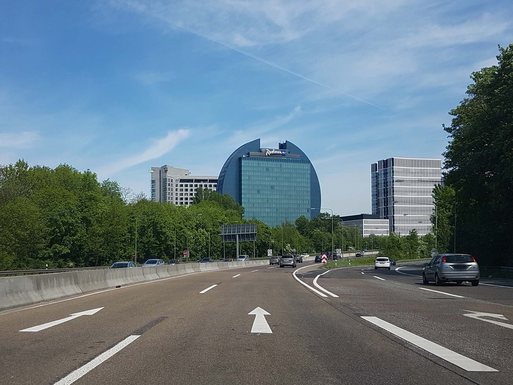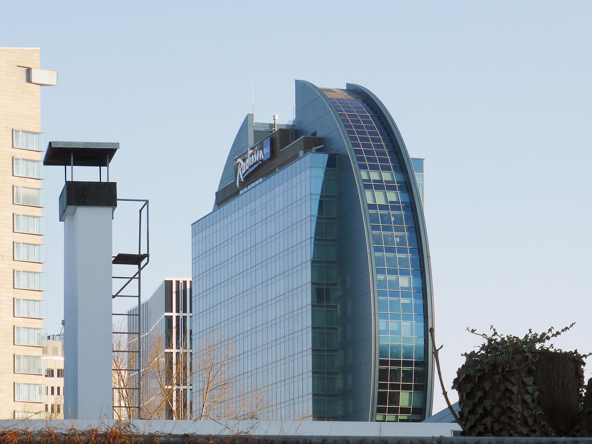 The Radisson Blu Hotel Frankfurt is a 96 meters (315 feet) high hotel tower and is located next to the A 648 freeway in Frankfurt’s City West area. Due to its prominent location not far from the Katharinen Roundabout (Katharinenkreisel) and the Messe Frankfurt site, the building catches the eye when entering the motorway. The Radisson Blu Hotel Frankfurt was called the Radisson SAS Hotel Frankfurt until the beginning of 2009. In the planning and construction phase, the real estate project had the working title Blue Heaven.
