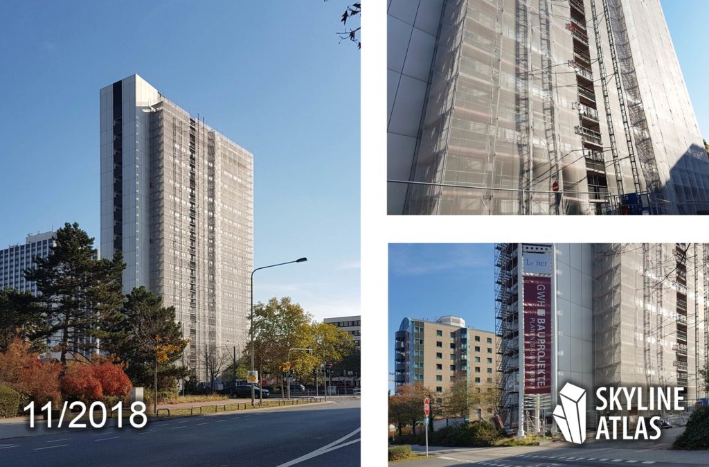 Status January 2018: The deconstruction work (gutting and facade removal) began in December 2017. The start of actual construction is planned for March 2018. The completion of the high-rise residential building, with 150 rental apartments, is expected for fall 2019. The high-rise residential building will be converted by GWH Wohnungsgesellschaft, while GWH Bauprojekte, as a subsidiary, will take over project management. The condominiums are still in the planning phase; these are built and marketed by the GWH construction projects. The architecture was designed by Stefan Forster Architekten.