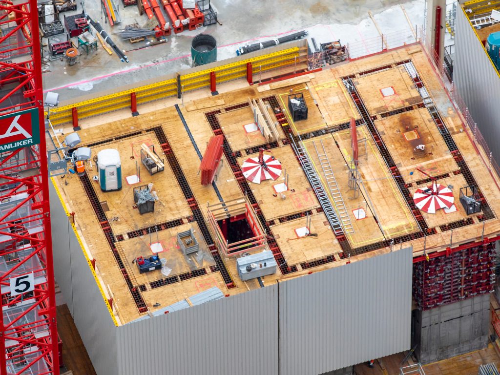 As elevators are of particular importance during the construction process, especially for high-rise buildings, the company has also developed the Climb Lift, which transports people and materials upwards during the construction process and grows step by step with the high-rise building. In addition to a faster mode of operation, the Climb represents a logistically outstanding solution, especially on very narrow construction sites – for example in a high-rise crowd – as large construction cranes can be avoided.